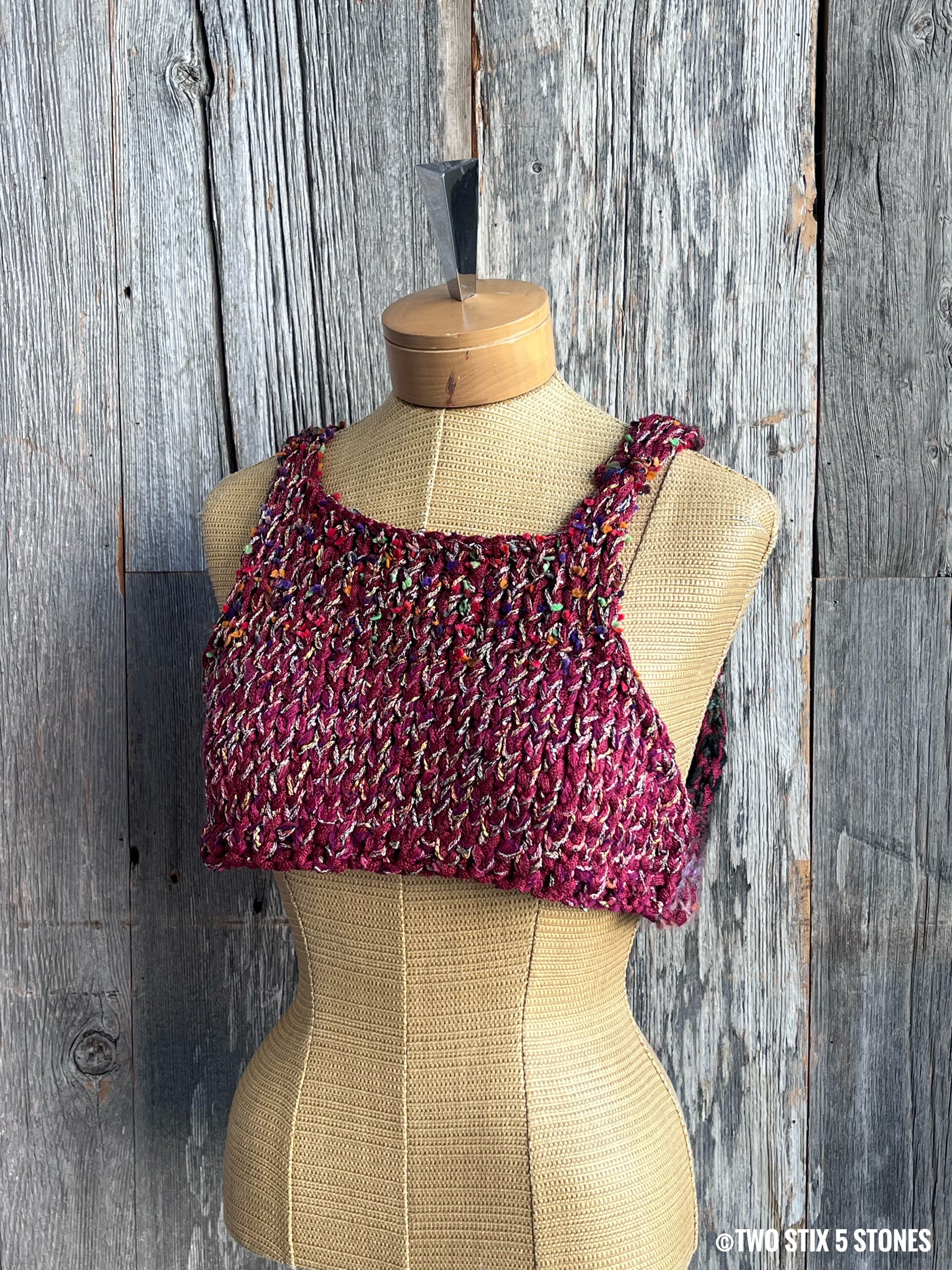 Bold, playful, and totally one-of-a-kind—this hand-knit funky crop slipover tank is a wearable burst of creativity. Featuring a cropped fit and sleeveless design, it’s perfect for layering or standing out on its own. Made with care and personality in every stitch, it showcases vibrant colors, unexpected textures, and a carefree vibe that turns heads. Whether styled over a tee, paired with high-waisted jeans, or thrown on for a festival-ready look, this piece brings a punch of handmade charm and fearless style to any outfit.