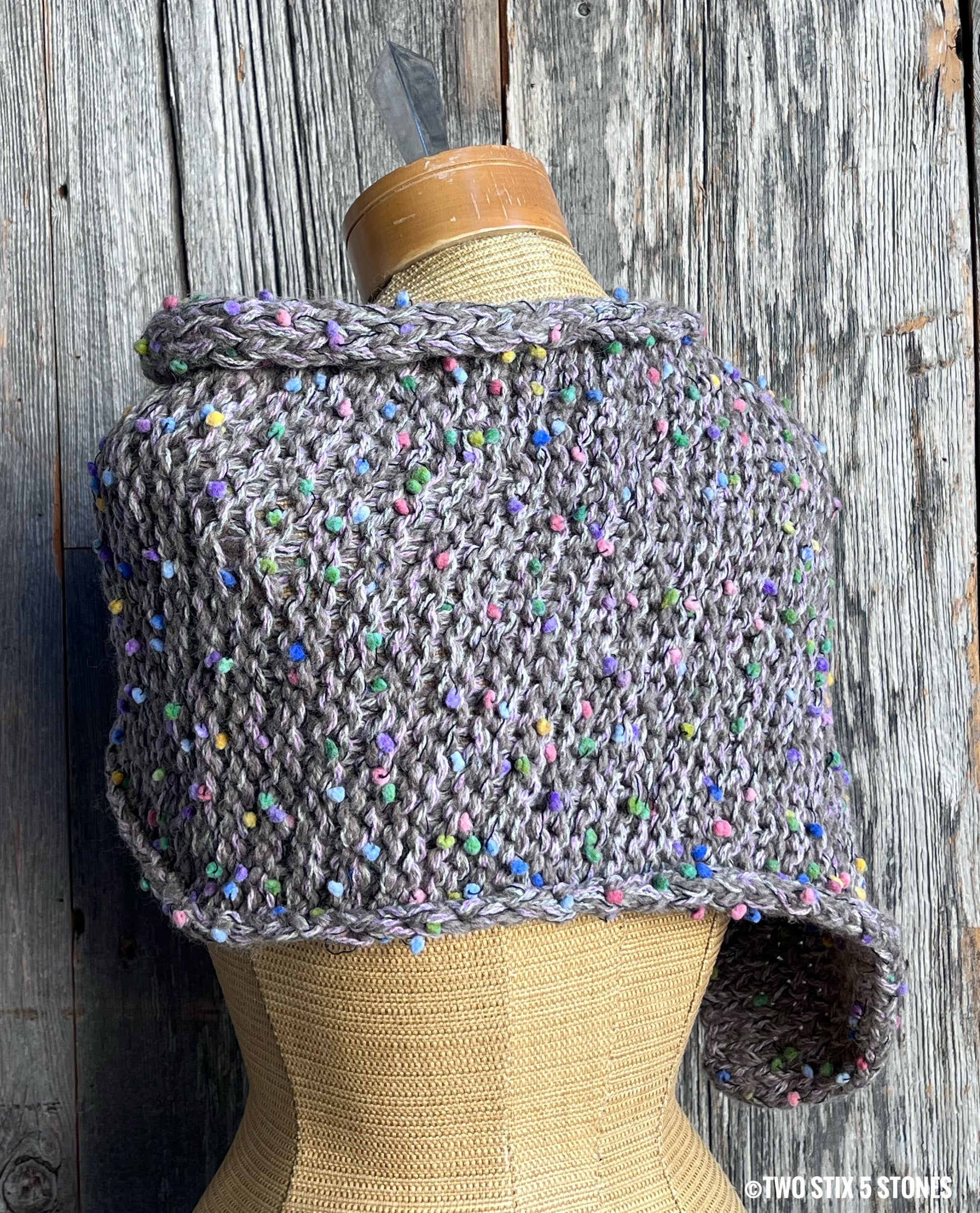 This handknit piece is designed to be asymmetrical for a wow factor. The fabric is dense and drapes nicely on the body.