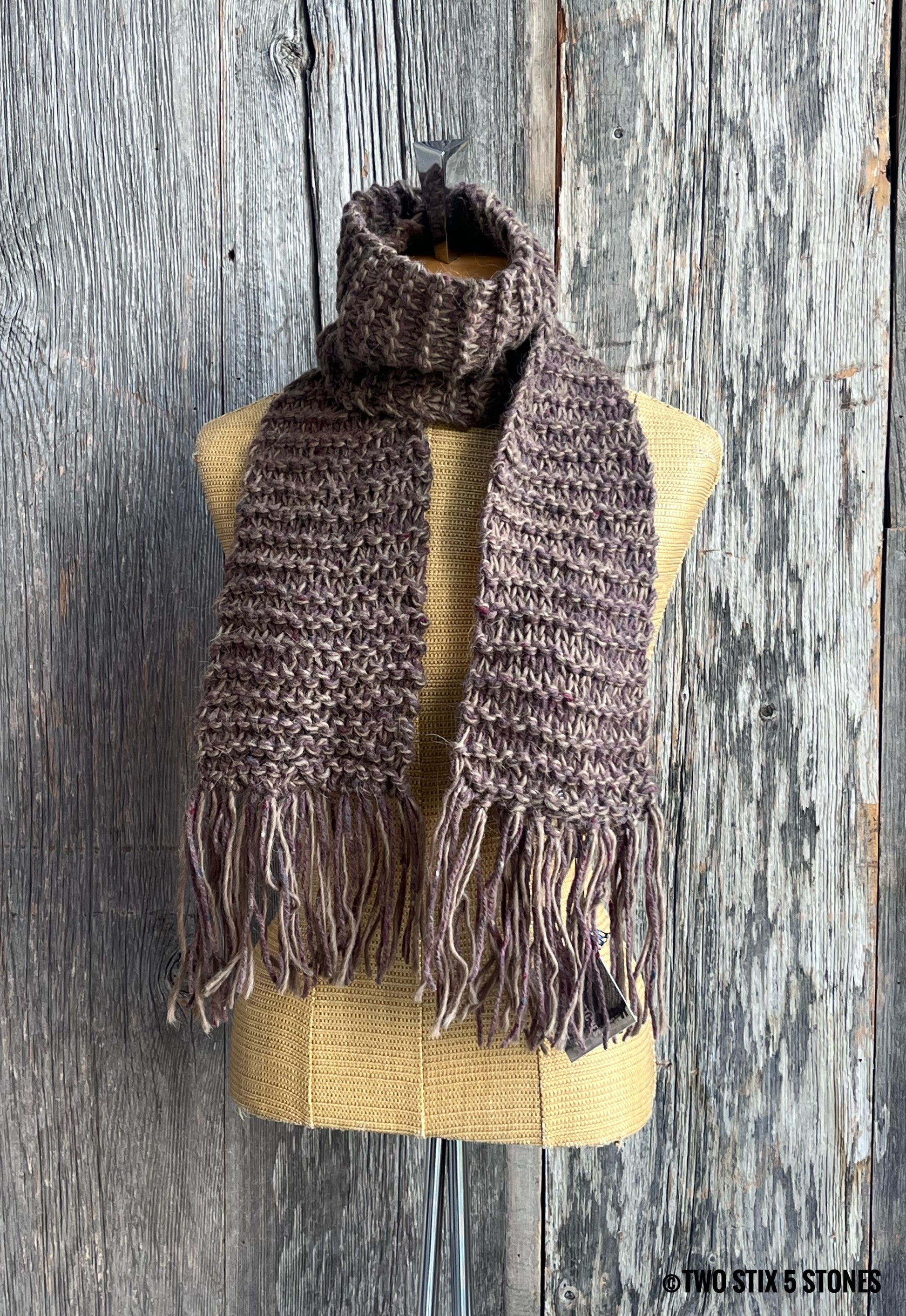 Wrap yourself in timeless elegance with this handknit scarf, meticulously crafted from an exquisite blend of luxury yarns. Soft to the touch and effortlessly stylish, this piece features a rich texture and a fluid drape that speaks to its premium quality. The design is finished with hand-tied fringe, adding a touch of charm to its sophisticated silhouette.