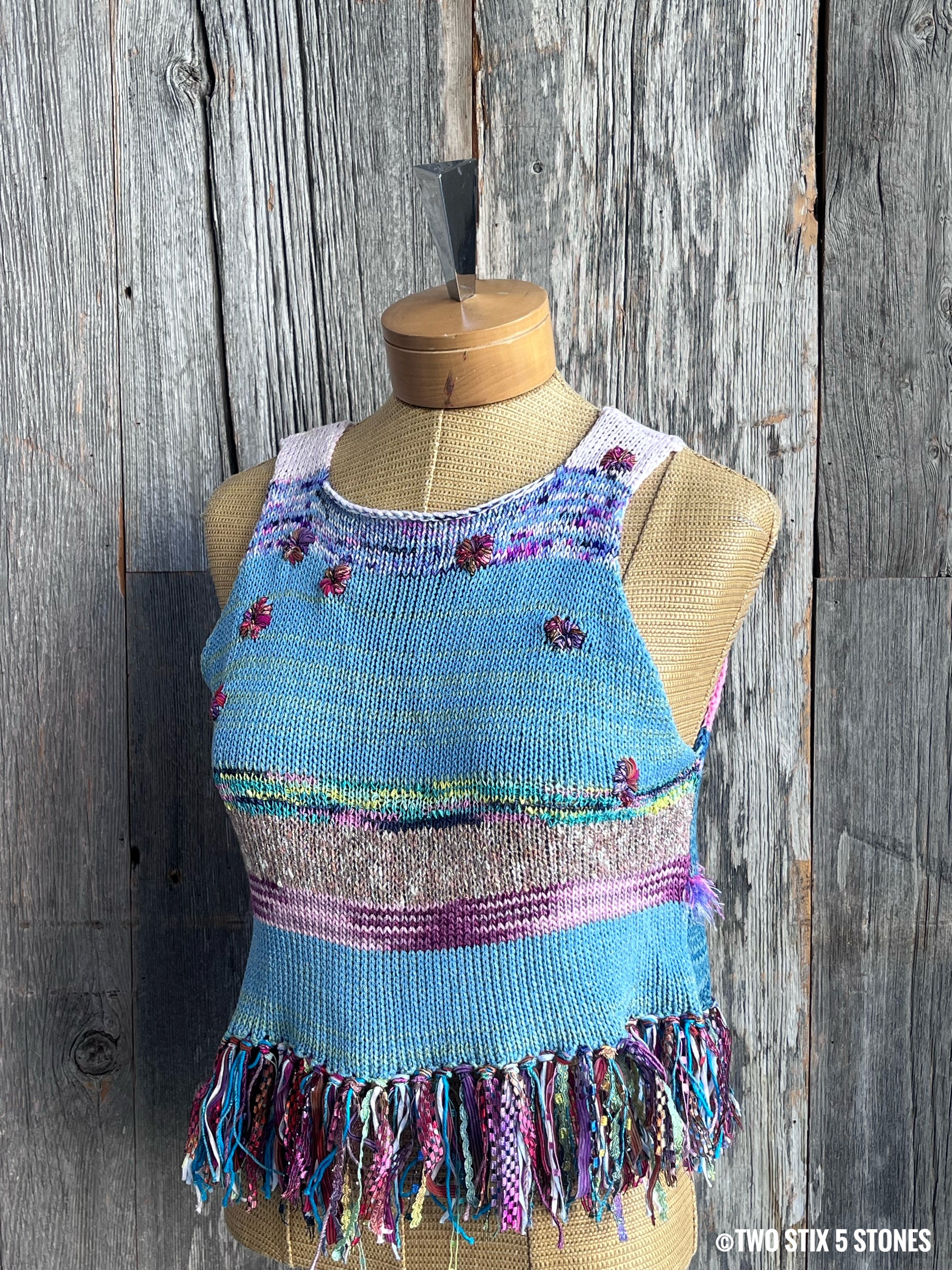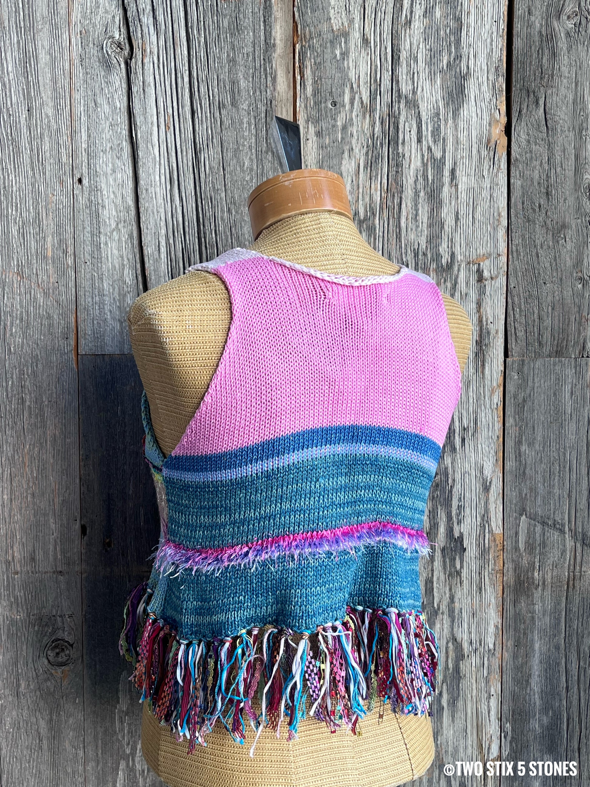 Add a splash of color and a dash of fun to your wardrobe with this cute handmade knit slipover, finished with flirty fringe for extra flair. Bursting with personality, this piece features a vibrant mix of colors and textures, handcrafted with love and care for that truly one-of-a-kind feel. The relaxed fit makes it perfect for layering over a bandeau, tees, dresses, or turtlenecks, while the fringe detail adds movement and charm to every step. Cozy, creative, and full of joy—this slipover is made for self-expression and good vibes only.